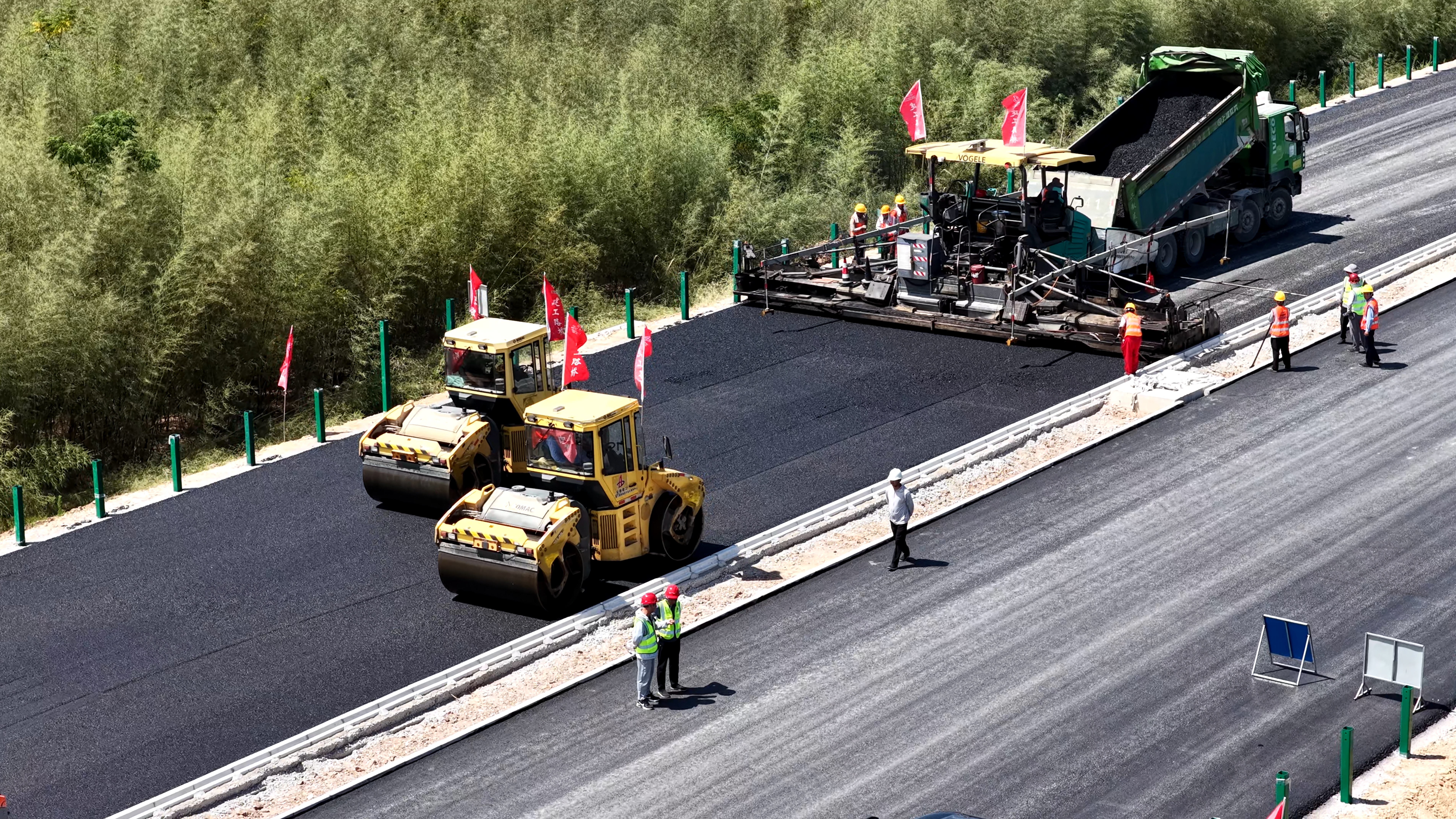 晨曦被建設(shè)者喚醒,G329孫埠至大汪村段改建工程施工現(xiàn)場(chǎng)早已是一片繁忙景象。攤鋪機(jī)與壓路機(jī)在蒸騰的熱浪中有序作業(yè),這條連接宣州區(qū)與寧國(guó)市的重要國(guó)道正全力沖刺水東段10月底全幅通車目標(biāo)。面對(duì)高溫與保暢的雙重壓力,項(xiàng)目黨支部堅(jiān)持“錯(cuò)峰不錯(cuò)時(shí)”理念,組織黨員突擊隊(duì)抓好全線12個(gè)作業(yè)面的同步推進(jìn),并采取“抓兩頭、歇中間”的彈性工作制,充分利用早晚黃金時(shí)段搶抓進(jìn)度。