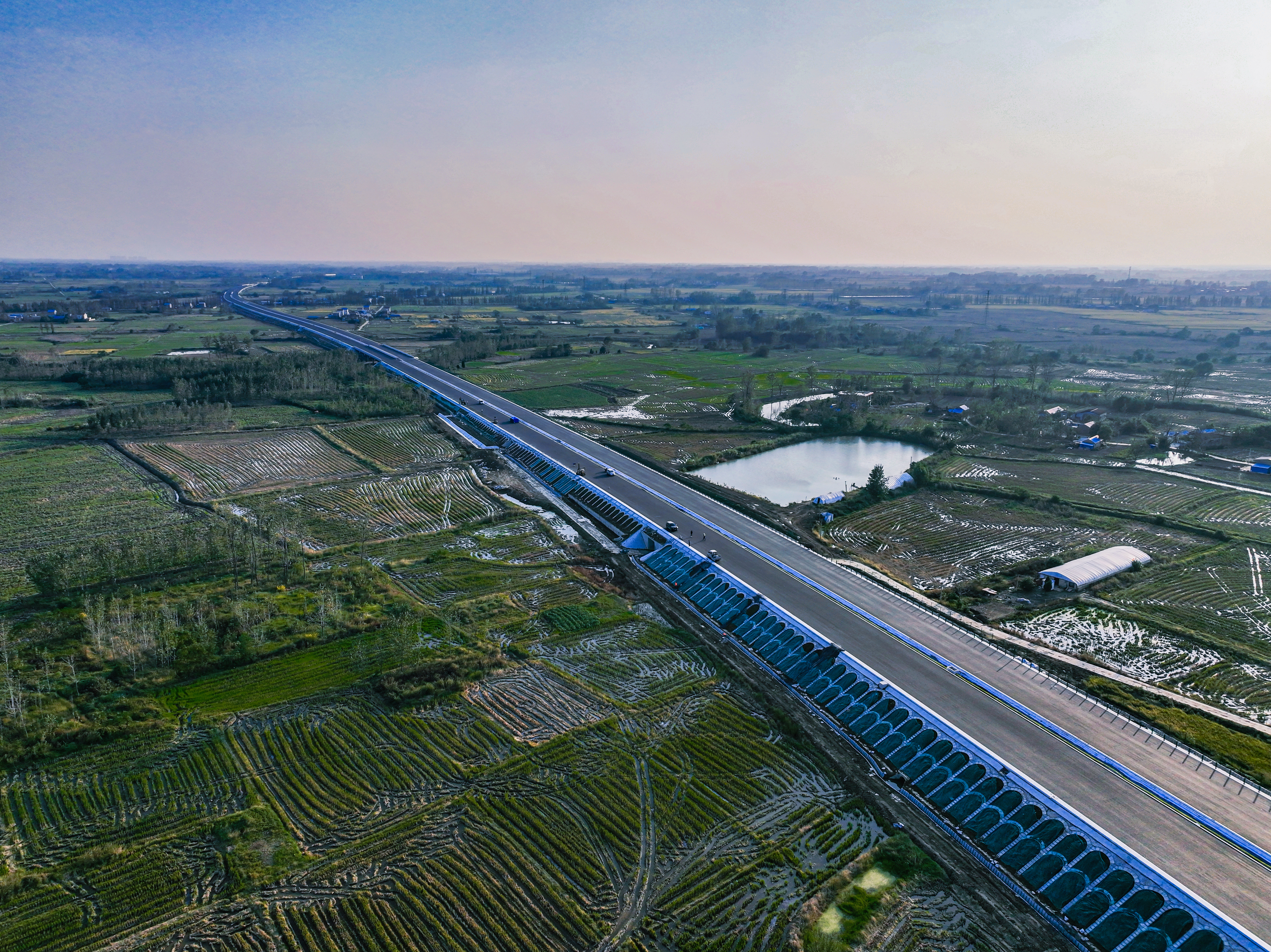 在廣袤平坦的淮河平原修路架橋,并非想象中那般容易。安徽建工路橋承建的淮桐高速淮南段路基4標(biāo)項(xiàng)目全長9.6公里,共有橋梁15座,包含李山、小甸集2處互通立交,施工內(nèi)容涵蓋路基土方、橋梁涵洞、互通立交、預(yù)制構(gòu)件等專業(yè)領(lǐng)域。開工建設(shè)初期,房屋征拆、桿線遷改的點(diǎn)多量大,導(dǎo)致沿線被分割成5段,作業(yè)面不連續(xù),施工組織難度極高。