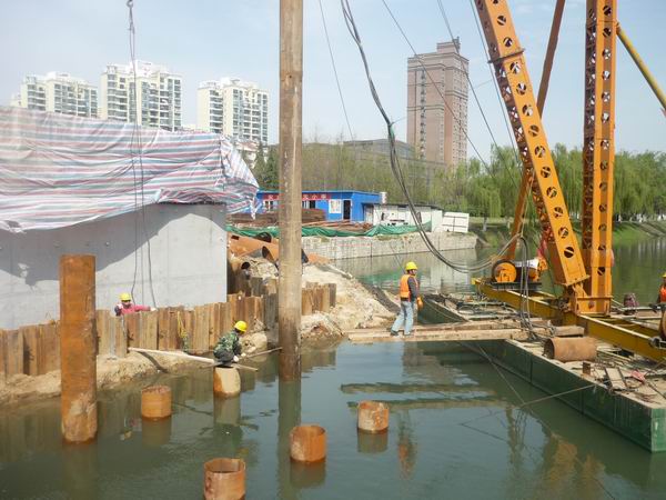宋斗灣路項目完成南淝河河中鋼管樁打設(shè)工作
