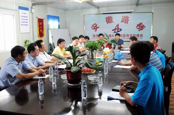 會上,投資集團(tuán)劉總肯定了我項(xiàng)目部在施工建設(shè)方面所取得的成績,認(rèn)為瑞尋A7標(biāo)項(xiàng)目部總體施工計(jì)劃好,施工組織能力強(qiáng),給整個(gè)工程的建設(shè)創(chuàng)造了良好的條件,也給兄弟標(biāo)段項(xiàng)目部施工建設(shè)起到了示范作用。同時(shí)希望安徽路橋項(xiàng)目部繼續(xù)鼓足干勁,在以后的安全生產(chǎn)和質(zhì)量管理各方面為瑞尋高速公路工程建設(shè)起到“標(biāo)兵”作用。