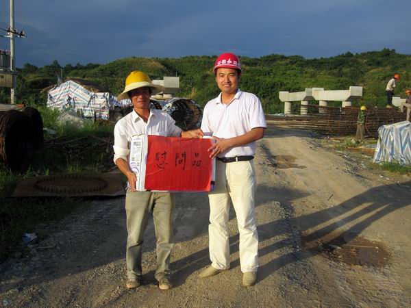 入夏以來(lái),黃祁高速公路建設(shè)沿線地區(qū)持續(xù)高溫,廣大項(xiàng)目員工冒著高溫酷暑始終堅(jiān)守在一線,為加快施工進(jìn)度而不懈努力。2010年7月18日下午,我部項(xiàng)目經(jīng)理黃華及項(xiàng)目部主要管理人員深入施工現(xiàn)場(chǎng),慰問(wèn)廣大員工,檢查各工區(qū)施工隊(duì)伍防暑降溫工作的開展情況,并將防暑降溫用品發(fā)放到各工區(qū)施工隊(duì)。