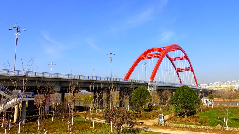 105國(guó)道(三角元至太和段)太和潁河三橋加寬工程于2015年8月開(kāi)工,2017年7月順利交工。橋梁全長(zhǎng)576.53米,主橋全寬23.2米,引橋全寬19.5m,主跨為152米下承式鋼管砼系桿拱橋,引橋?yàn)?0m箱梁結(jié)構(gòu),下部結(jié)構(gòu)采用柱式墩,鉆孔灌注樁基礎(chǔ),設(shè)計(jì)荷載等級(jí)為公路-I級(jí)。該項(xiàng)目建成通車(chē)以來(lái),有效改善了太和縣城潁河兩岸的交通狀況,對(duì)加快城鎮(zhèn)化建設(shè)起到了重要作用。