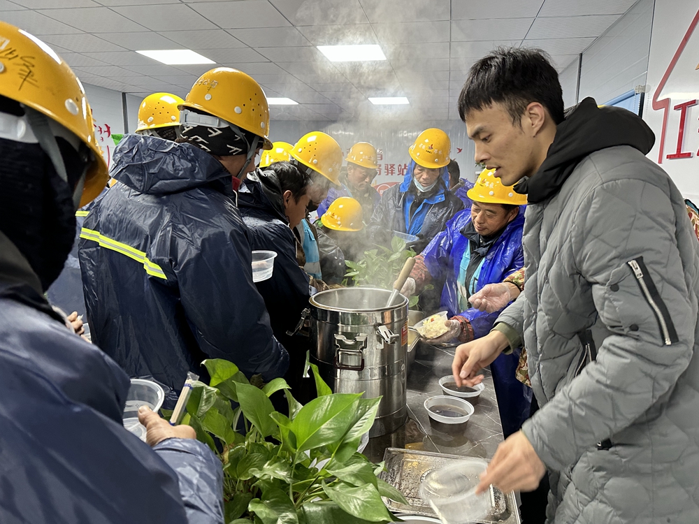 伴隨著寒潮來襲,為積極應(yīng)對降雪和斷崖式降溫天氣,確保全體建設(shè)者溫暖過冬,近日,公司各項目精心打好冬季送溫暖“組合拳”,為一線建設(shè)者們及時發(fā)放防寒服、棉鞋和手套等防寒防滑物品,在寒風(fēng)中為他們送去姜湯、熱水,在深夜里準(zhǔn)備好熱湯、熱飯......用濃濃的“家文化”驅(qū)散寒冷,讓建設(shè)者們在冬日里暖身又暖心,為全面沖刺年度目標(biāo)任務(wù)保駕護(hù)航。