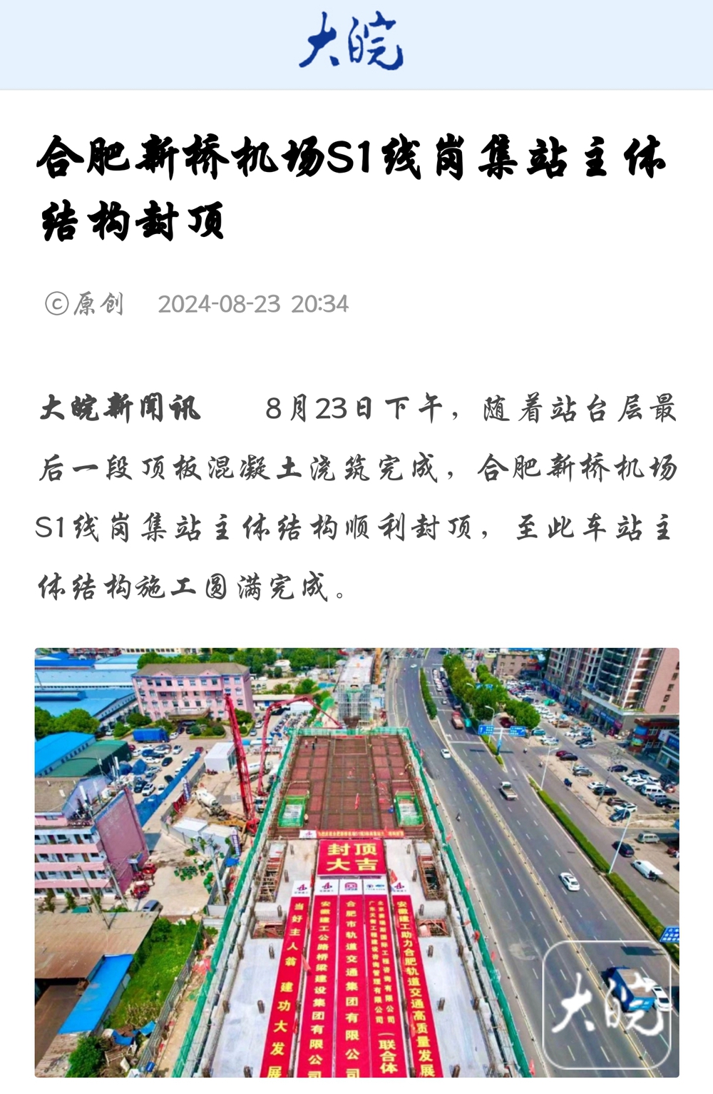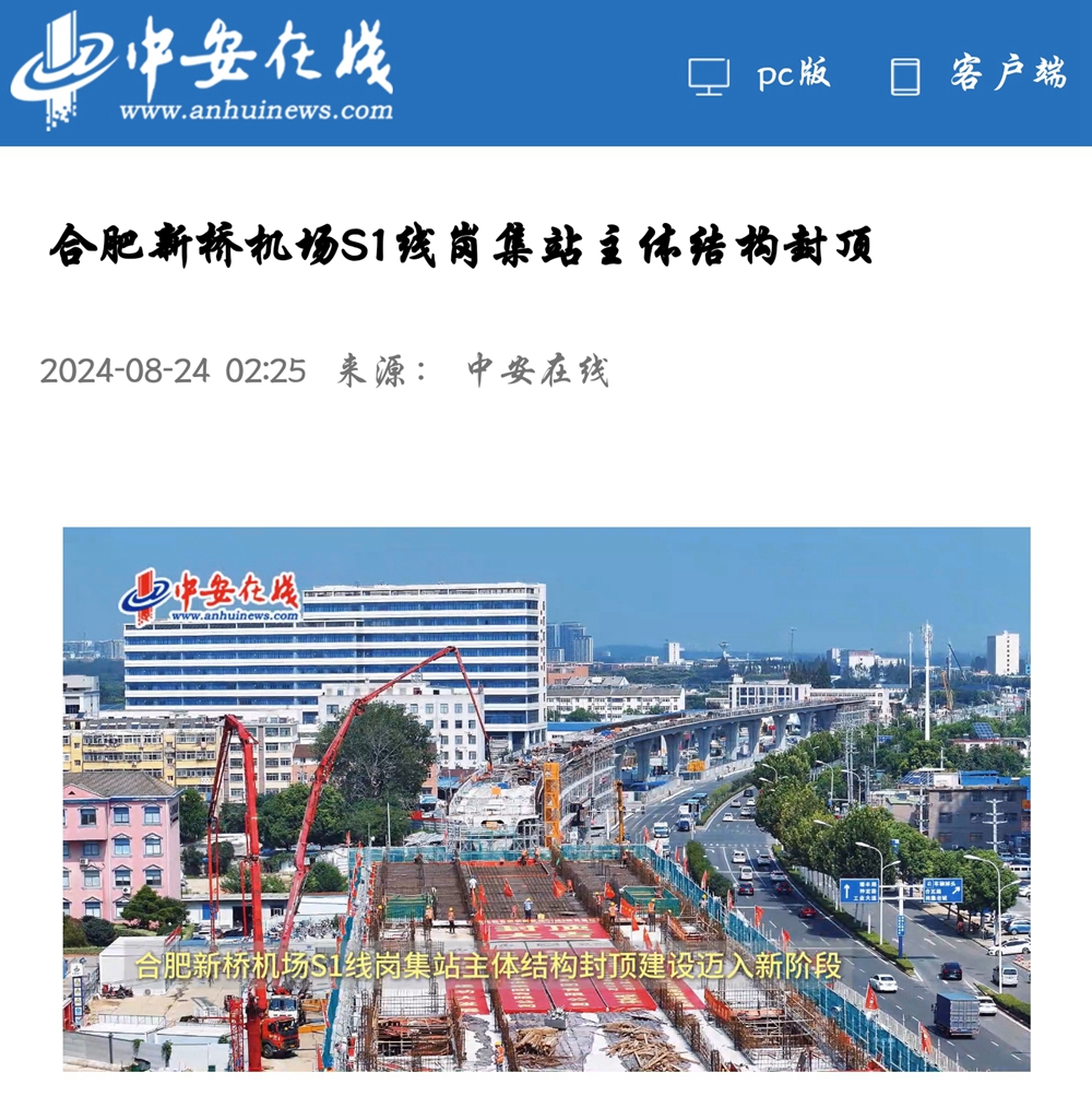 【名媒聚焦】央廣網(wǎng)、中安在線、安徽日報(bào)等主流媒體聚焦合肥新橋機(jī)場S1線項(xiàng)目崗集站主體結(jié)構(gòu)封頂