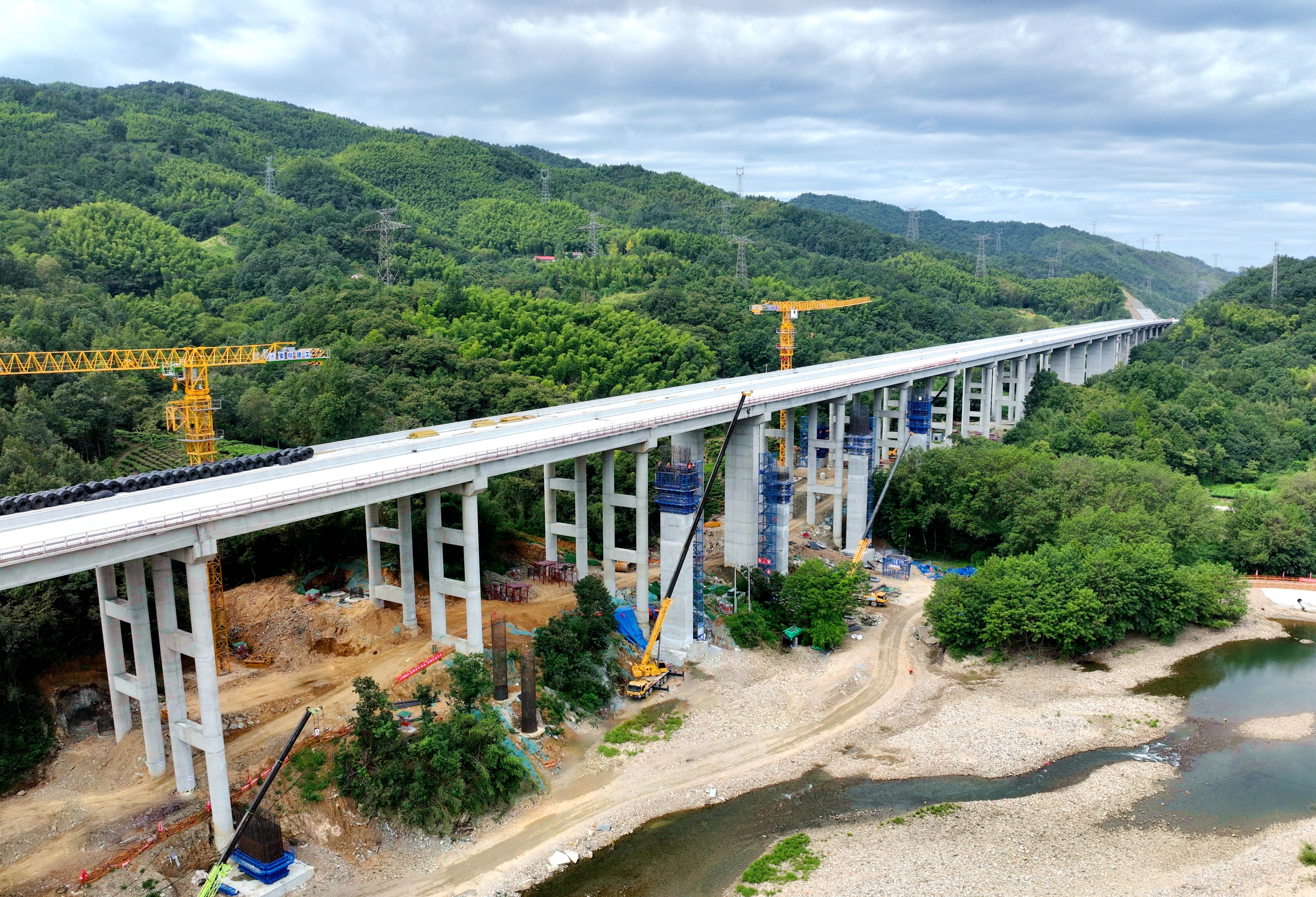 青山樞紐是項目起點,與在建的和襄高速(六安段)連接,肩負著兩條高速“牽手”的使命。新建樞紐由5座匝道橋和1座拼寬橋組成,均為高墩柱、大跨徑橋梁,其中A、C兩條匝道需要對和襄高速十里溪大橋拼寬施工。項目技術負責人孫維龍告訴記者,“和襄高速預計2025年底實現(xiàn)全線通車,該樞紐也要在年底前完成橋梁主體結構施工”。