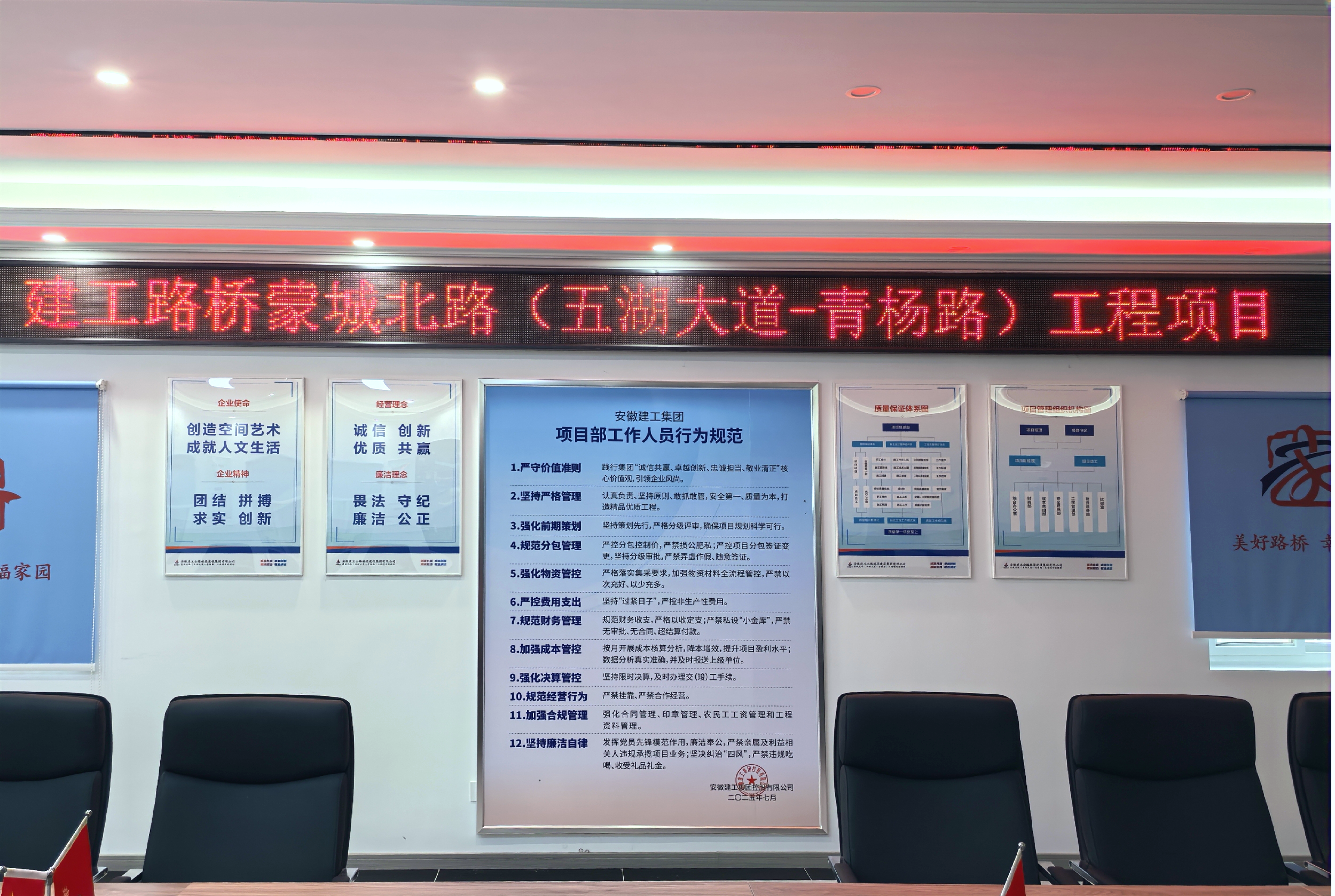 合肥分公司精準聚焦關鍵規(guī)章制度,多措并舉推動制度落地見效。強化陣地建設,營造宣貫氛圍。在會議室、辦公區(qū)等顯著位置,統(tǒng)一、規(guī)范張貼制度文件及核心要點海報,打造可視化學習陣地,引導全員形成“天天看、天天學、時時學、處處學”的常態(tài)化學習習慣,助力制度要求入腦入心。豐富學習場景,深化制度理解。構建“常態(tài)化滲透+專題化精講”相結合的學習模式,將制度宣貫學習深度融入晨會、周例會、班前會等日常工作場景,圍繞制度條款開展專題學習和研討交流,推動制度認知從知曉向理解轉變。健全督查機制,保障執(zhí)行實效。針對項目部制度執(zhí)行情況組建專項督查組進行檢查,重點核查合同管理、物資采購、成本管控等關鍵環(huán)節(jié),建立問題臺賬并明確整改時限,實行閉環(huán)管理,并將制度執(zhí)行情況納入項目考核要點,確保制度從紙面、墻面轉化為行動自覺。