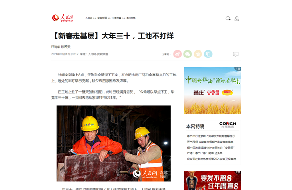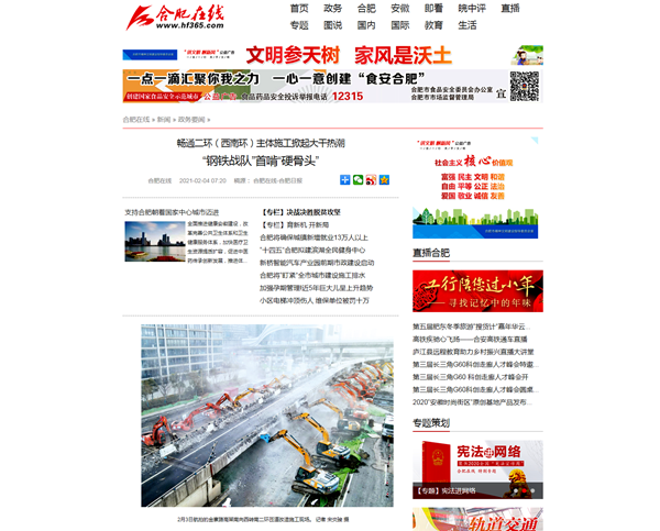 人民網(wǎng)【新春走基層】專欄報(bào)道了該項(xiàng)目大年三十工地不打烊,參建人員持續(xù)奮戰(zhàn)在施工一線。中國(guó)日?qǐng)?bào)海外版《End of the road》、合肥日?qǐng)?bào)《“鋼鐵戰(zhàn)隊(duì)”首啃“硬骨頭”》報(bào)道了公司第二次對(duì)老舊匝道橋拆除工作的場(chǎng)景。安徽衛(wèi)視超級(jí)新聞場(chǎng)等媒體以《“鋼鐵戰(zhàn)士”組隊(duì) 南二環(huán)改造工程第二階段施工啟動(dòng)》報(bào)道了南二環(huán)改造工程順利進(jìn)入第二階段施工節(jié)點(diǎn)的訊息。學(xué)習(xí)強(qiáng)國(guó)合肥學(xué)習(xí)平臺(tái)、澎湃新聞以《合肥:暢通南二環(huán) 鉚足干勁 大干正酣》為題,合肥新聞聯(lián)播以《“步履不?!北惩?nbsp;建設(shè)按下“快進(jìn)鍵”》《過(guò)年堅(jiān)守南二環(huán) 來(lái)年道路早暢通》為題,報(bào)道了春節(jié)期間該項(xiàng)目施工現(xiàn)場(chǎng)干出的“加速度”。抖音等自媒體平臺(tái)以短視頻形式展示了數(shù)十臺(tái)機(jī)械同時(shí)作業(yè)的震撼場(chǎng)面,關(guān)注熱度超過(guò)3百萬(wàn),安徽路橋速度得到合肥市民的再次點(diǎn)贊。