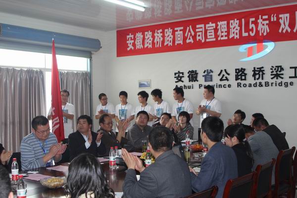 副總經(jīng)理陳智代表公司向全體參會人員宣讀了皖路橋路面辦〔2012〕5號文件——《關(guān)于開展宣貍改建工程L5標(biāo)“雙月會戰(zhàn)”勞動競賽的通知》;路面公司工程部長王小杰、總經(jīng)濟(jì)師袁青嶺分別詳細(xì)闡述了活動的實(shí)施方案和具體獎勵措施。