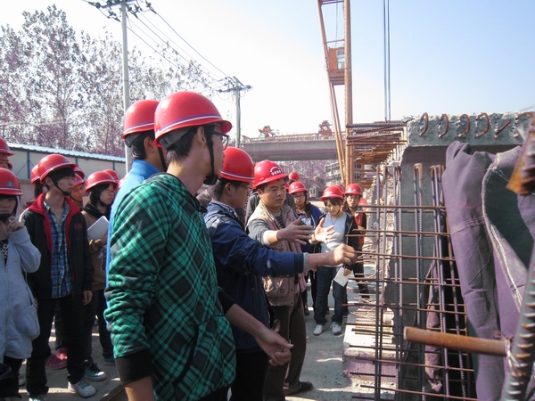 傅總首先對(duì)師生們的到來表示歡迎,并簡要介紹了該項(xiàng)目的相關(guān)情況。隨后,該項(xiàng)目熊祖發(fā)為參觀學(xué)生上了一堂精彩的理論課,熊祖發(fā)對(duì)照施工進(jìn)度圖向同學(xué)們?cè)敿?xì)介紹了項(xiàng)目施工流程、難點(diǎn)、重點(diǎn)以及工程造價(jià)組成。為加深印象,熊祖發(fā)帶領(lǐng)師生實(shí)地參觀了主橋、鋼桁架梁、預(yù)制梁場等施工現(xiàn)場。每到一處,同學(xué)們都被精致的工藝所折服,紛紛稱贊安徽路橋不愧為一家大企業(yè),并當(dāng)場表達(dá)了加盟路橋公司的愿望。