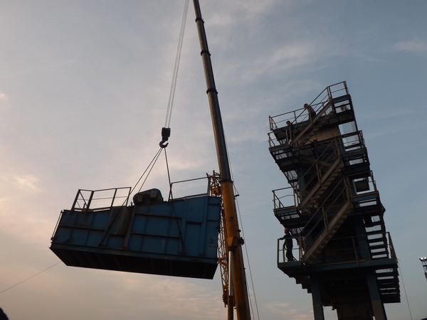 G205改建路面項(xiàng)目完成拌和站主樓吊裝 發(fā)布時(shí)間:2013年07月19日 來源:G205改建路面項(xiàng)目 發(fā)布人: 作者:楊艷峰 瀏覽:2816次 7月17日下午3時(shí),伴隨著響聲震天的鞭炮聲,兩輛大型吊車在安全技術(shù)人員和作業(yè)人員的通力協(xié)作下,安全有序地進(jìn)行拌和站主樓的吊裝。經(jīng)過全體施工人員的努力,于當(dāng)日下午6時(shí)30分完成拌和站主樓的吊裝。